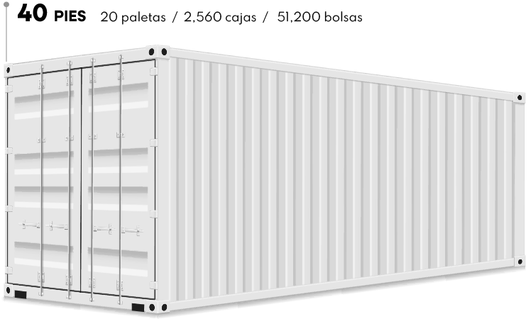 El envío más grande que ofrecemos viene a través de contenedores. Las dimensiones para un solo contenedor son las siguientes: